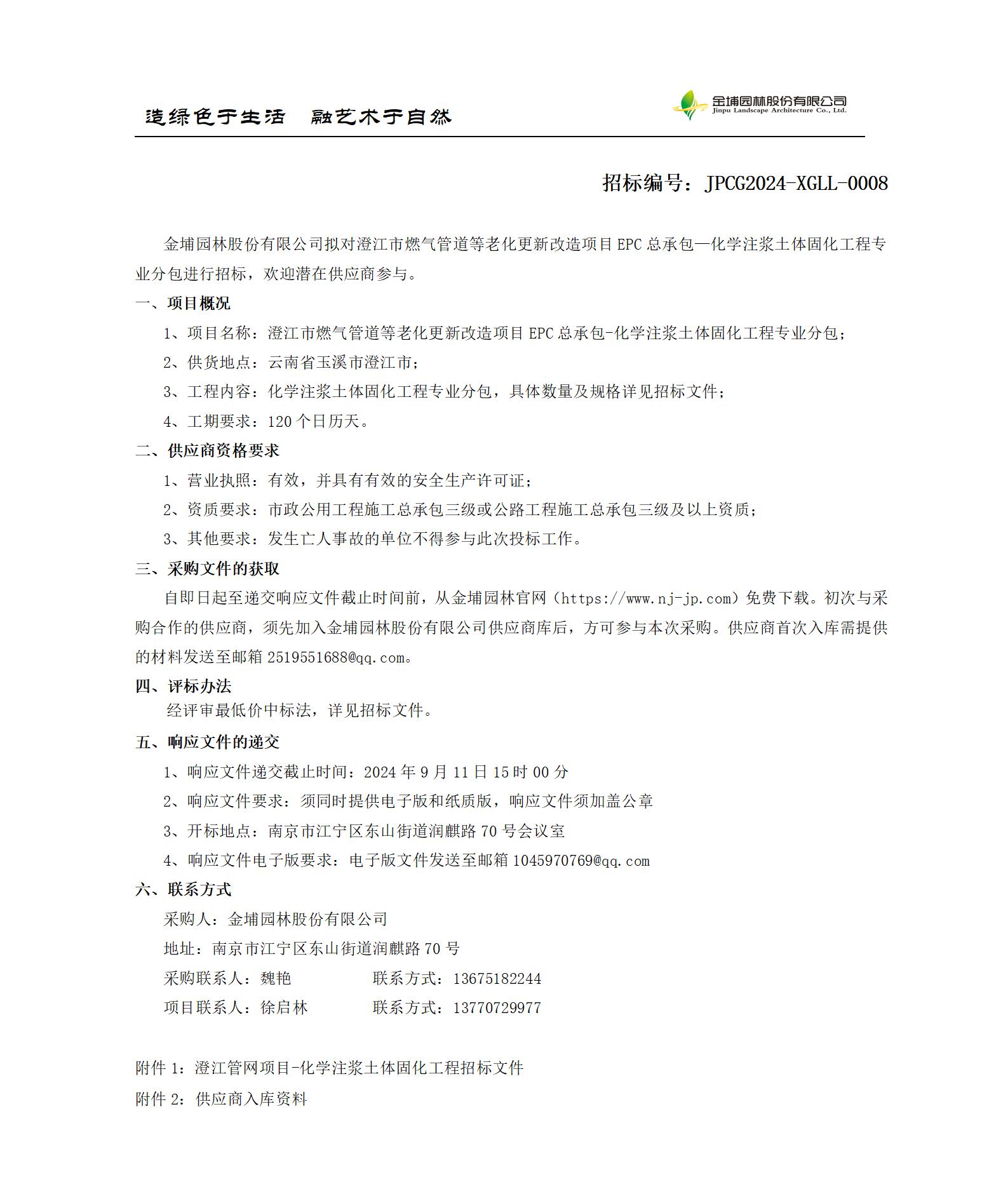 澄江市燃?xì)夤艿赖壤匣赂脑祉?xiàng)目EPC總承包—化學(xué)注漿土體固化工程專業(yè)分包招標(biāo)公告